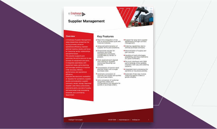 Supplier Management Data Sheet
